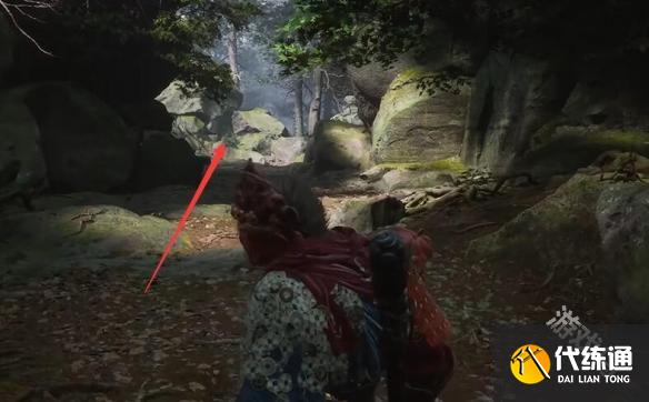 2.宝箱二:在林外土地庙处,我们可以继续往前走,在前面的路口往左,沿着山坡继续往上就可以找到宝箱。