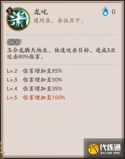 玉合龙腾天地生,快速攻击目标,造成3次攻击80%伤害。