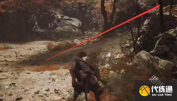 2.在图上位置右转上坡,沿着大树走。