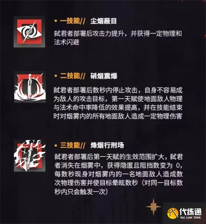 基础-20%命中率,Lv3模组增加降低命中率,可能达到30%。这使得弑君者成为一个非常灵活的烟雾弹角色。