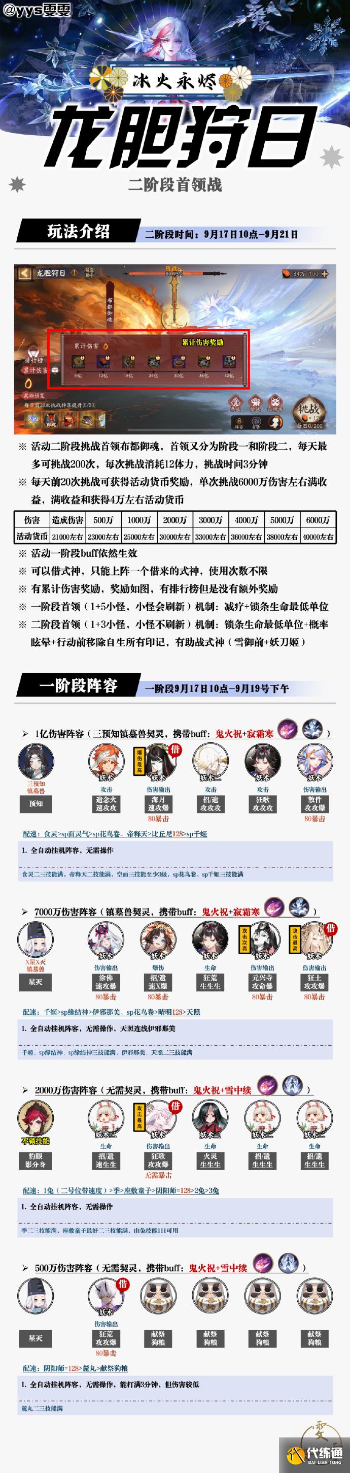 阴阳师最近开启的冰火永烬活动即将开启二阶段,很多玩家不知道该如何搭配阵容,下面小编为大家带来阴阳师龙胆狩日攻略,感兴趣的小伙伴一起了解一下吧。