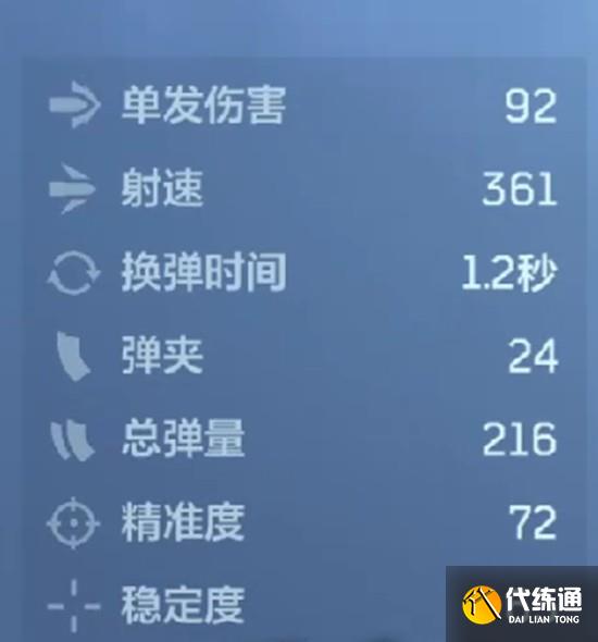 逆战未来苔色暴风作为一款低倍镜手枪,在副武器定位中拥有不俗的基础属性。其单发伤害为92点,射速达到361,换弹时间仅需1.2秒,弹匣容量为24发,总备弹量为216发。精准度与稳定性分别为72和65,在同类手枪中属于上游水平。这些数据使得苔色暴风在快速拔枪补枪时具备良好的操控性,尤其适合在主武器换弹间隙进行应急输出。