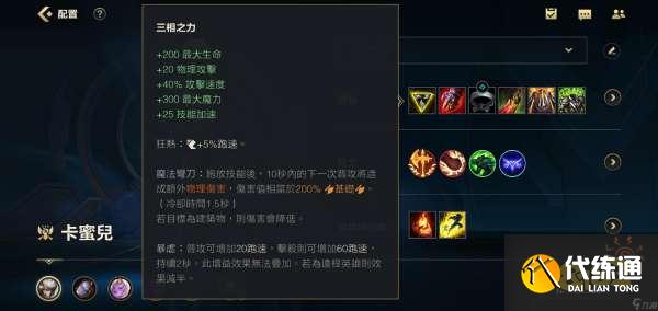 首先第一件装备我们肯定是出三项,这件装备的被动是最适合青钢影的输出方式的,小伙伴们都清楚青钢影的主要输出手段就是Q技能,而且青钢影的Q可以附带普攻的特效,所以三项的普攻伤害翻倍的被动是很适合青钢影的,能让青钢影配合自己真实伤害的被动连续踢出两次很高伤害的Q,而且三项的全部属性都很契合青钢影。