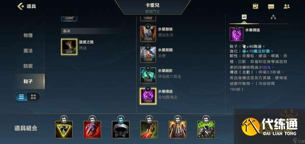 第四件装备我们可以把水银鞋升级成正义荣耀来打团,也可以升级成为传送来打单带牵制敌方,小伙伴们要主要看当前的局势去选择不同的装备,才能帮助到队友。