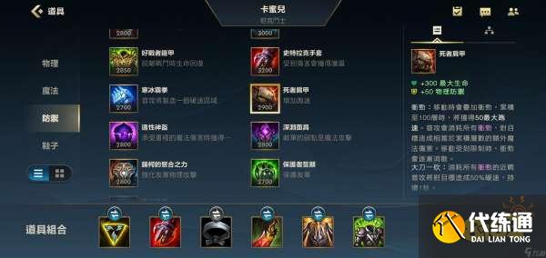 第三件装备我们可以选择复活甲或者死舞,顺风均势局我们就可以出死舞,因为顺风局我们不需要进去卖,我们可以出死舞来打伤害,但是逆风局我们就要进去踢对面C位,开大进去卖为队友创造机会,出复活甲就是最好的选择。