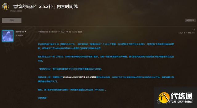 太平洋时间和国服时间相差16个小时,也就是说国服很可能会在12日下午2点直接结束竞技场。玩家们参与竞技场混分一般会安排在周三晚上,原因就是这个时间段混分的玩家比较多,竞技场排队速度很快,并且胜率也会相对较高。然而按照暴雪蓝贴中的说法,玩家在周三晚上可能就无法进入竞技场了。