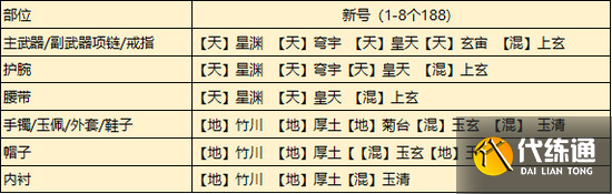 将8个188设定为目标,朝着上图中的组合逐步配齐。这套组合可以拿满攻击部位的共鸣,对于输出有着不错的提升。