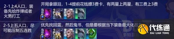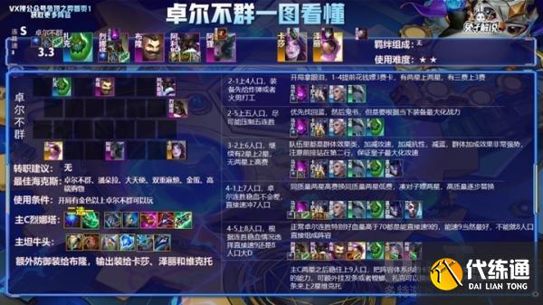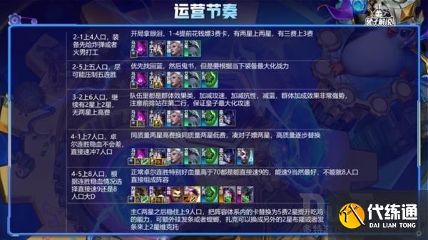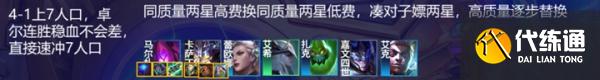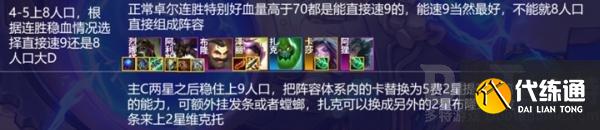 卓尔不群是版本刚刚加强的海克斯,过渡是非常强力的,按照回蓝鬼书的组合,基本上处于无脑连胜稳血上人口的状态,直接速冲8人口即可。