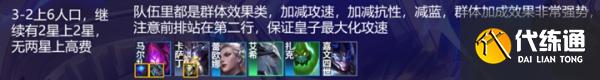 3-2上6人口,继续按照两星和强力的原则往上凑即可,继续最大化装备疯狂连胜,全程考虑一个回蓝一本鬼书即可,就是烈娜塔的装备,整体就是各种增减益特效,提肉度拖时间,让蚂蚱打伤害。