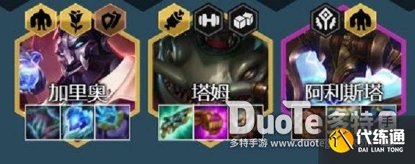 1.阵容组成:赛娜、萨勒芬妮、布隆、牛头、加里奥、塔姆、希尔科阵容羁绊:3名流2巨像2保镖1食神1宿命阵容变阵:如果后期如果蔚先2星可以先上2星蔚开2格斗,但是2保镖的坦度>2格斗,关键在于布隆有一手控制。